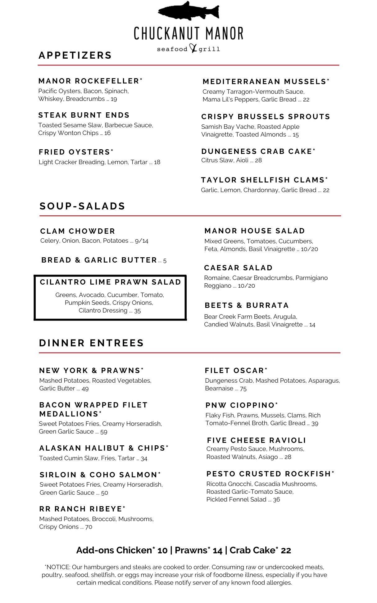 Our featured menu will be available from 2-8PM